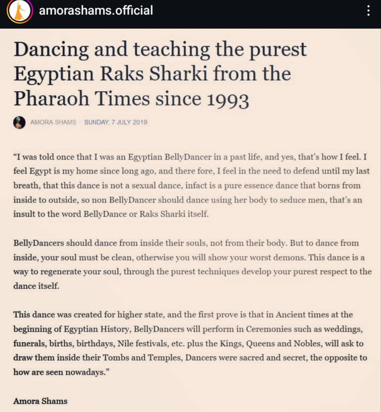 Amora Shams doesn't share publicly the secrets of BellyDance because she only teaches female students.