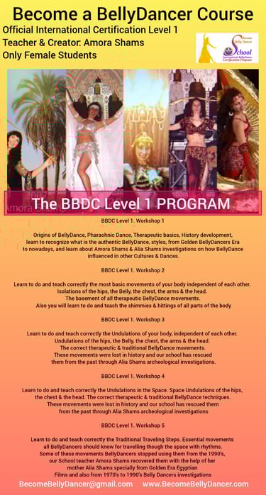 Amora & Alia Shams are specialist in the Ancient & Traditional Old School of BellyDance and developed a special teaching techniques were they create BellyDancer in a miracle incredible way, since 2012 Providing the International UNESCO BellyDance Level Certifications.